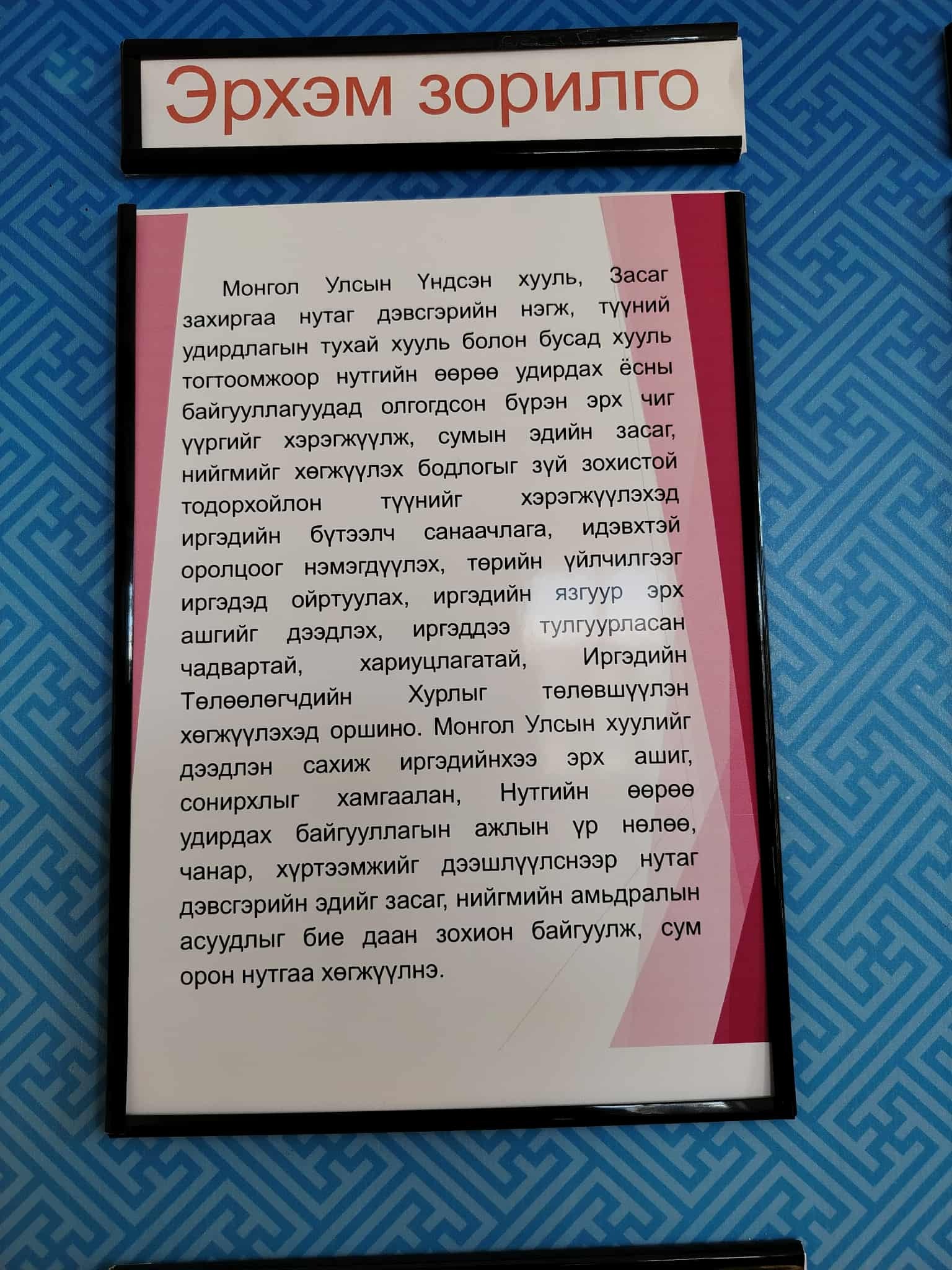 Монгол Улсын Үндсэн хууль, Засаг захиргаа нутаг дэвсгэрийн нэгж, түүний удирдлагын тухай хууль болон бусад хууль тогтоомжоор нутгийн өөрөө удирдах ёсны байгууллагуудад олгогдсон бүрэн эрх чиг үүргийг хэрэгжүүлж, сумын эдийн засаг, нийгмийг хөгжүүлэх бодлогыг зүй зохистой тодорхойлон түүнийг хэрэгжүүлэхэд иргэдийн бүтээлч санаачлага, идэвхтэй оролцоог нэмэгдүүлэх, төрийн үйлчилгээг иргэдэд ойртуулах, иргэдийн язгуур эрх ашгийг дээдлэх, иргэддээ тулгуурласан чадвартай, хариуцлагатай иргэдийн Төлөөлөгчдийн Хурлыг төлөвшүүлнэ.