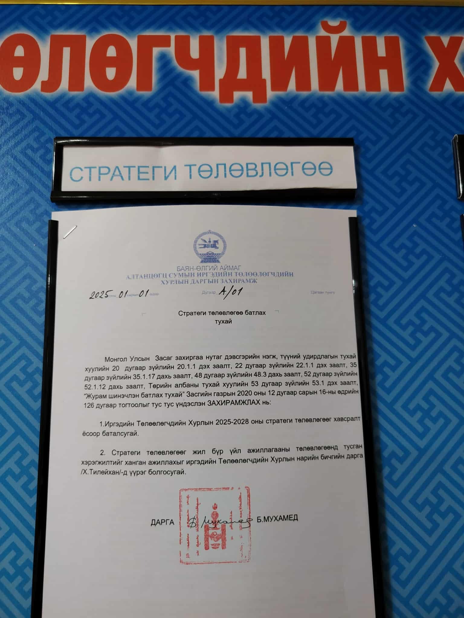 АЛТАНЦӨГЦ СУМЫН ИРГЭДИЙН ТӨЛӨӨЛӨГЧДИЙН ХУРЛЫН 2025-2028 ОНЫ СТРАТЕГИ ТӨЛӨВЛӨГӨӨНИЙ ЗОРИЛГО ЗОРИЛТ